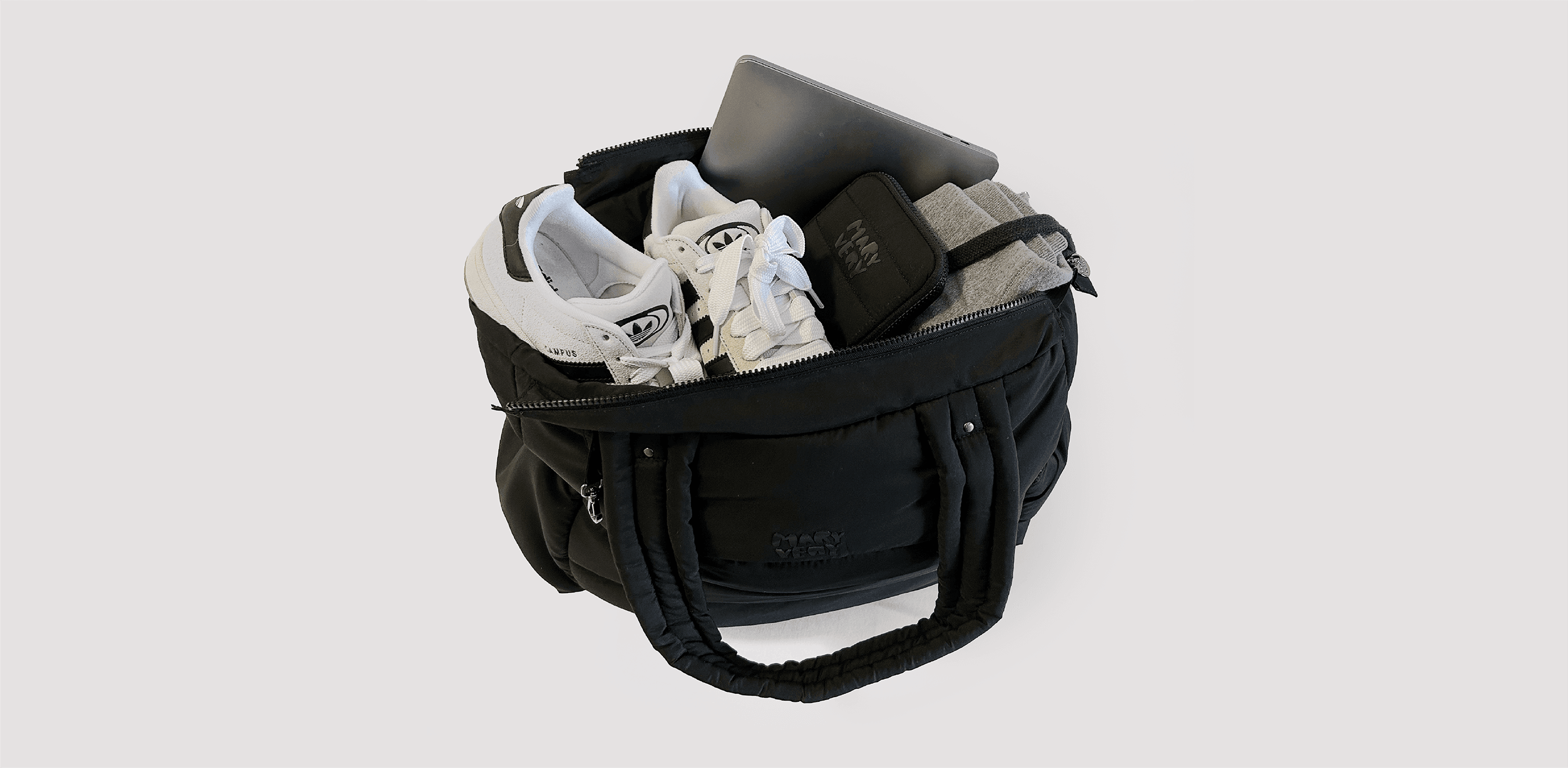 A Mik é uma bolsa puffer feita de nylon maleável e estrutura acolchoada. É a bolsa perfeita para diversas ocasiões! Para academia, para a mãe que não sai de casa sem levar consigo as coisas do baby mas gosta de um estilo mais limpo e com design elegante. Para estudantes que não gostam de mochilas mas precisam de espaço suficiente para levar todo material de estudo, computador e essenciais do dia-a-dia. Em viagens ela funciona como bagagem de mão e possui inúmeras outras possibilidades de uso. A Mik tem um espaço interno gigante para armazenar tudo que você precisa e mais um pouco que sempre acaba surgindo no meio do dia! Possui bolsos internos e externos, estes últimos desenhados especialmente para armazenamento de garrafas e canecas. É o pretinho básico que facilita a vida de qualquer um!